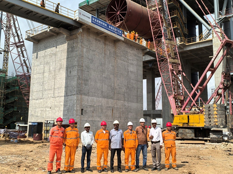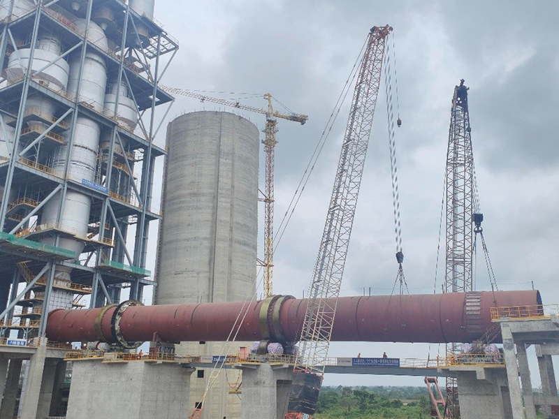 该项目回转窑设计共9节,总长度74米。在施工准备阶段,项目管理人员与分包单位经过仔细研讨,制定了详细全面的吊装方案,对全体员工进行了细致的安全技术交底,重点强调安全措施和操作规范,全力确保吊装过程中人员和设备安全。最终,项目部克服了高温多雨、蚊虫肆虐等诸多困难,按时高质量完成回转窑吊装,获得业主管理团队高度评价。